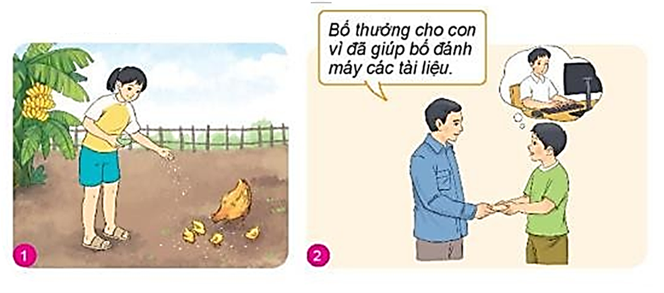 Hình 1: Phụ giúp bố mẹ việc nhà bằng cách cho gà ăn.