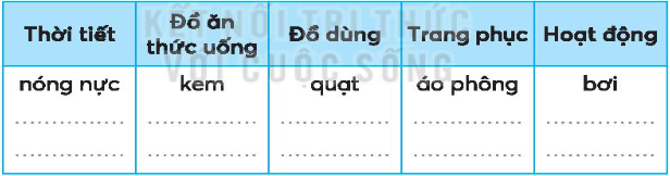 Tìm các từ ngữ nói về mùa hè viết vào bảng dưới đây: