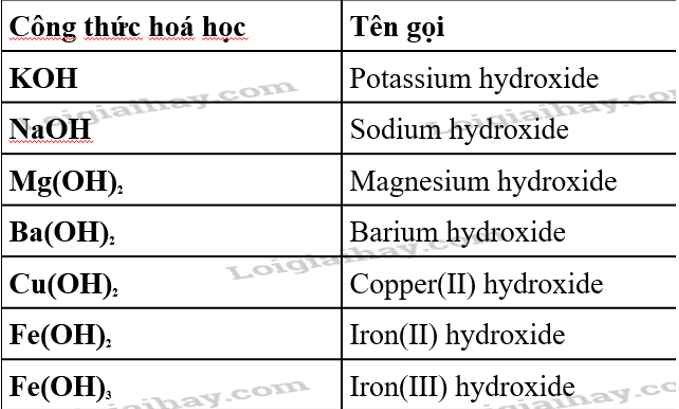 4. Tên gọi base = tên Kim loại (kèm hoá trị nếu kim loại có nhiều hoá trị) + hydroxide