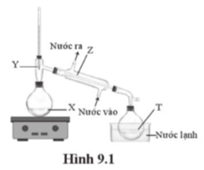 Một học sinh tiến hành chưng cất để tách CHCl3 (ts = 61 °C) ra khỏi CHCl2CHCl2 (ts = 146 °C) bằng bộ dụng cụ như ở Hình 9.1.Khi bắt đầu thu nhận CHCl3 vào bình hứng thì nhiệt độ tại vị trí nào trong hình đang là 61 °C?