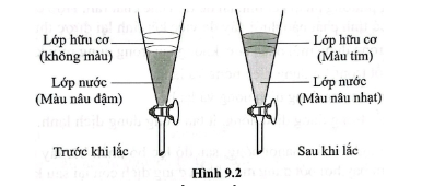 d) Giải thích sự khác nhau về màu sắc của lớp nước và lớp hữu cơ trong dụng cụ trên trước và sau khi lắc.