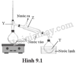 Một học sinh tiến hành chưng cất để tách CHCl3 (ts = 61o) ra khỏi CHCl2CHCl2 (ts = 146oC) bằng bộ dụng như hình 9.1 Khi bắt đầu thu nhận CHCl3 vào bình hứng thì nhiệt độ tại vị trí nào trong hình đang là 610C?