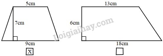 Đánh dấu X vào ô trống đặt dưới hình thang có diện tích bé hơn 50cm2.