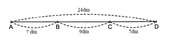 b) Đoạn thẳng AC dài bao nhiêu dm?