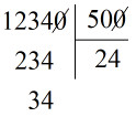 Vậy:  123400 : 500 = 24 (dư 340).