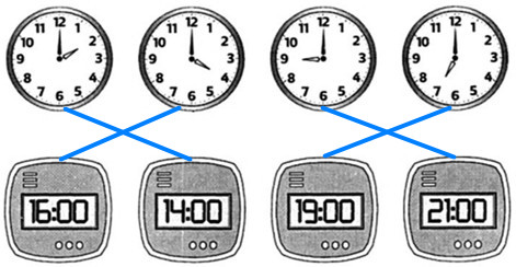Bài 1. Nối hai đồng hồ chỉ cùng thời gian :