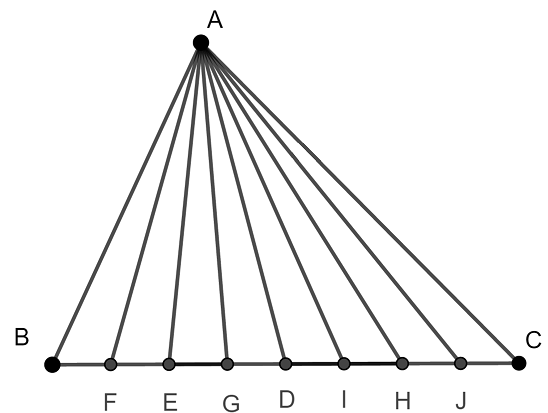 Cho tam giác ABC biết BF = FE = EG = GD = DI = IH = HJ = JC.