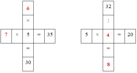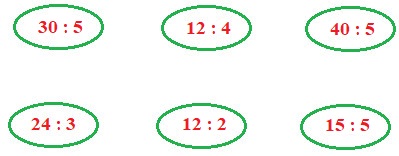 30 : 5 = 6                    12 : 4 = 3                 40 : 5 = 8