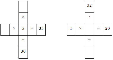 a) 5 × 7 + 9                              b) 4 × 9 – 8