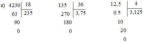 a) 4230 : 18                             135 : 36                         12,5 : 4                           \(\dfrac{3}{5}:\dfrac{4}{7}\)