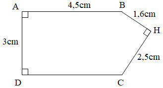 Bài 3. Một mảnh đất được vẽ trên bản đồ tỉ lệ 1 : 1000 có kích thước theo hình vẽ dưới đây. Tính chu vi và diện tích của mảnh đất đó.