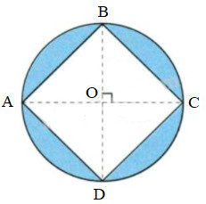 b) Muốn tính diện tích phần tô màu của hình tròn ta lấy diện tích hình tròn trừ đi diện tích hình vuông.
