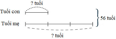 Bài 4: Tổng số tuổi hiện nay của hai mẹ con là 56 tuổi. Tuổi con bằng \(\dfrac{1}{3}\) tuổi mẹ. Hỏi: