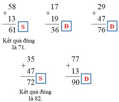 Kiểm tra cách đặt tính và tính kết quả của các phép tính.