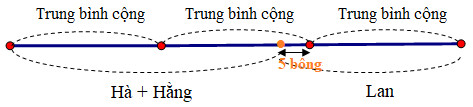 Nhìn vào sơ đồ, ta thấy 2 lần trung bình cộng số hoa của 3 bạn bằng tổng số hoa của Hà và Hằng cộng thêm 5 bông.