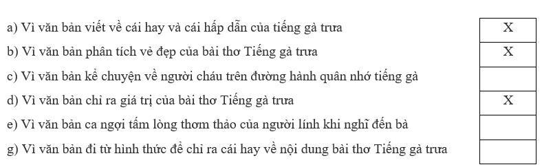 Đánh dấu X vào các ý trả lời đúng cho câu hỏi: “Tại sao văn bản Vẻ đẹp của bài thơ “Tiếng gà trưa một văn bản nghị luận?”: