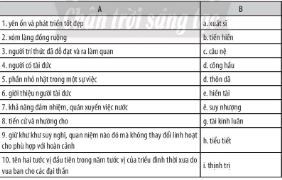 Chọn từ Hán Việt ở cột B có ý nghĩa tương đương với từ ngữ ở cột A.