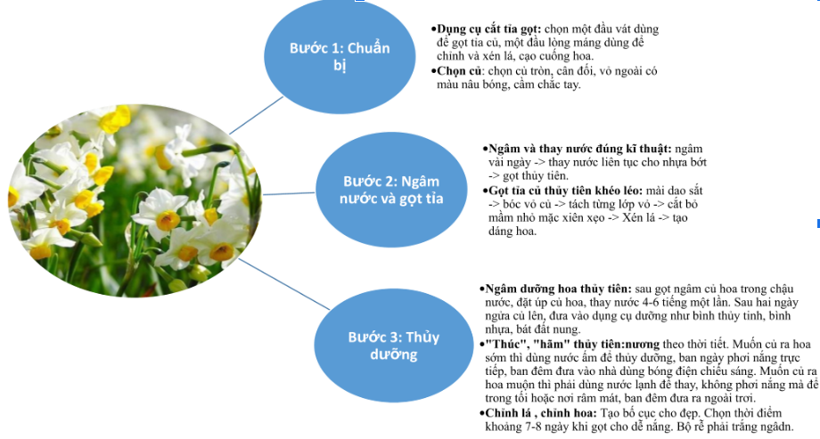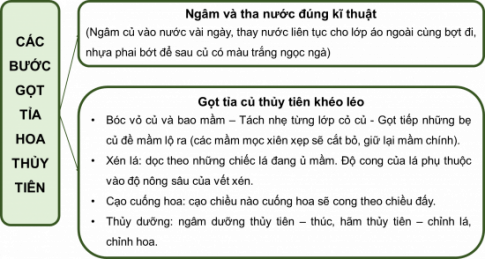 Vẽ sơ đồ tóm tắt các bước gọt tỉa củ hoa thủy tiên.