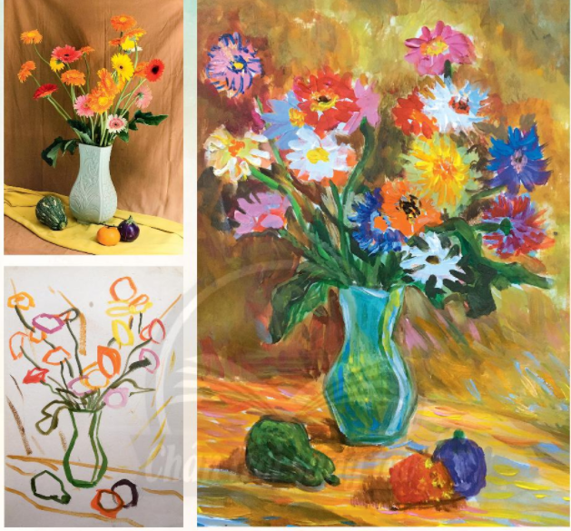 2. Cách vẽ tranh tĩnh vật màu – trang 11 – SGK Mĩ thuật lớp 6