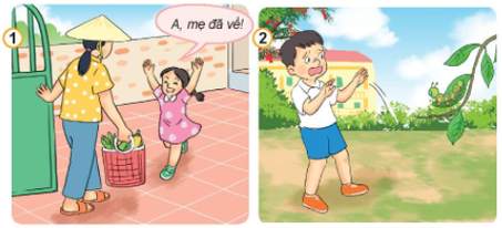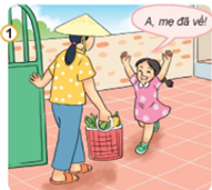 Bạn nữ đang thể hiện cảm xúc vui mừng khi thấy mẹ đi chợ về.