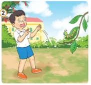 Bạn nam đang thể hiện cảm xúc sợ hãi khi nhìn thấy chú sâu.