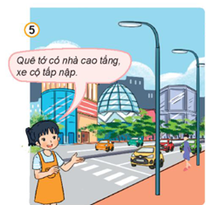Bức tranh vẽ cảnh sống ở đô thị tấp nập với đông đúc xe cộ qua lại cùng những ngôi nhà cao tầng khang trang, đẹp đẽ.