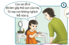 Bạn Cốm xin lỗi mẹ vì đã làm gãy thỏi son của mẹ và hứa sẽ không nghịch như thế nữa. Cốm là người biết nhận lỗi và sửa lỗi.