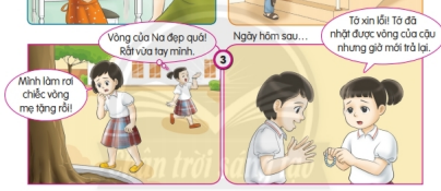Bạn nữ nhặt được chiếc vòng của Na đánh rơi nhưng hôm sau mới trả lại. Bạn nữ đã xin lỗi vì việc đó. Bạn nữ là người biết nhận lỗi và sửa lỗi.