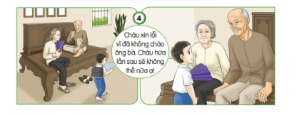 Bạn Bin xin lỗi ông bà vì không chào ông bà. Bạn Bin là người biết nhận lỗi và sửa lỗi.