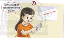Bạn nữ thấy vui sướng và bất ngờ vì bức tranh của bạn được giải nhất