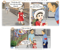 Bạn gái bị lạc, không thấy bố đâu. Bạn đã nhờ bác bảo vệ ở gần đó gọi điện cho bố theo số điện thoại ghi trên thẻ của bạn. Cuối cùng, bố đã tìm được bạn nhỏ.