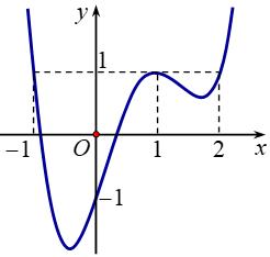 A. Hàm số đạt cực đại tại điểm \(x = 1\) và đạt cực tiểu tại các điểm \(x = \pm 2\).