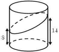 Câu 7. Cắt một khối trụ cao 18cm bởi một mặt phẳng, ta được khối hình dưới đây. Biết rằng thiết diện là một elip, khoảng cách từ điểm thuộc thiết diện gần đáy nhất và điểm thuộc thiết diện xa mặt đáy nhất lần lượt là 8cm và 14cm. Tính tỉ số thể tích của hai khối được chia ra (khối nhỏ chia khối lớn).