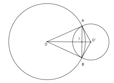 Cho hai đường tròn \(\left( {O;6\,cm} \right)\) và \(\left( {O’;2\,cm} \right)\) cắt nhau tại \(A,B\) sao cho \(OA\) là tiếp tuyến của \(\left( {O’} \right)\). Độ dài dây \(AB\) là