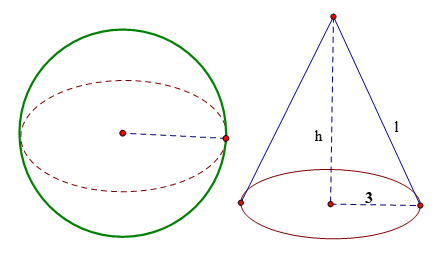 Cho hình cầu có bán kính \(5\,cm\). Một hình nón cũng có bán kính đáy bằng \(5\,cm\) và có diện tích toàn phần bằng diện tích mặt cầu. Tính chiều cao của hình nón.