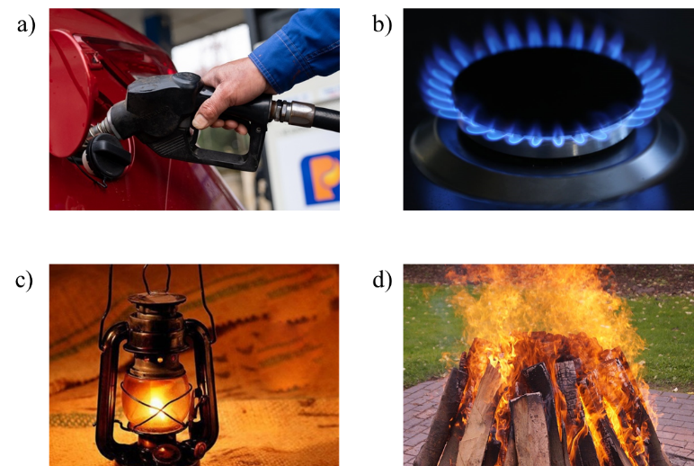Tên của các loại nhiên liệu được dùng trong các hình ảnh a), b), c), d) lần lượt là: