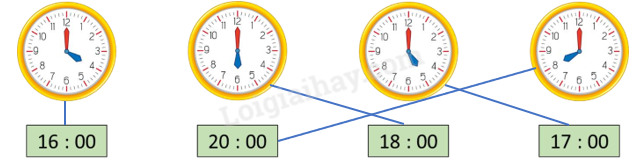 Câu 8. Nối hai đồng hồ chỉ cùng thời gian vào buổi chiều hoặc buổi tối:
