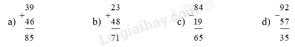 a) 39 + 46                  b) 23 + 48                  c) 84 – 19                   d) 92 – 57