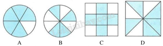 Đã tô màu $\frac{5}{8}$ hình nào dưới đây?