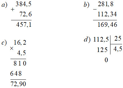Đặt tính rồi tính theo các quy tắc đã học về phép cộng, trừ, nhân, chia số thập phân.