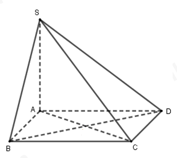 Vì hai mặt phẳng \((SAB);\,\,(SAD)\) cùng vuông góc với mặt phẳng đáy nên giao tuyến của hai mặt phẳng đó vuông góc với đáy.