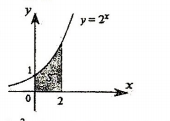 Câu 14: Cho hàm số \(y = {2^x}\) có đồ thị là đường cong trong hình bên. Diện tích S của hình phẳng tô đậm trong hình bằng