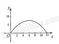 Parabol có phương trình dạng \(y = a{x^2} + bx\). Theo đề bài ta có parabol đi qua các điểm \((12;0)\) và \((6;8)\). Suy ra \(\left\{ {\begin{array}{*{20}{l}}\begin{array}{l}144a + 12b = 0\\36a + 6b = 8\end{array}\end{array} \Leftrightarrow \left\{ {\begin{array}{*{20}{l}}\begin{array}{l}a = – \frac{2}{9}\\b = \frac{8}{3}\end{array}\end{array}} \right.} \right.\)
