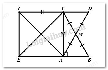 \( \Rightarrow \Delta ACE\) vuông cân tại \(A\left( {\angle EAC = {{90}^0}} \right)\)