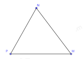 \( \Rightarrow \widehat M = 180^\circ – \widehat N – \widehat P = 180^\circ – 70^\circ – 55^\circ = 55^\circ \)