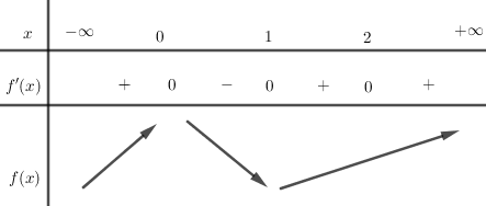 Câu 8(NB): Cho hàm số \(f\left( x \right)\) có đạo hàm \(f’\left( x \right) = x\left( {x – 1} \right){\left( {x – 2} \right)^2}\). Số điểm cực trị của hàm số đã cho là