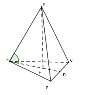 Vì SA=SB=SC nên \(S\) nằm trên trục đường tròn ngoại tiếp tam giác ABC.