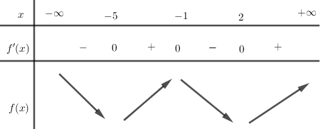 Câu 1(NB): Cho hàm số y=f(x) có đạo hàm \(f’\left( x \right) = \left( {x – 2} \right)\left( {x + 5} \right){\left( {x + 1} \right)^3}\), \(\forall x \in \mathbb{R}\). Mệnh đề nào sau đây đúng?