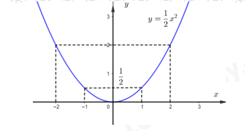Ta có: \(a = \dfrac{1}{2} > 0\) nên đồ thị có bề lõm hướng lên trên, đồ thị hàm số đi qua gốc tọa độ \(O\left( {0;0} \right)\) và nhận trục \(Oy\) làm trục đối xứng.