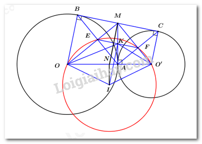 c) Gọi \(I\) là tâm đường tròn ngoại tiếp tứ giác \(OEFO’\), \(K\) là trung điểm của đoạn \(AM\). Chứng minh \(OO’ = 2IK\).